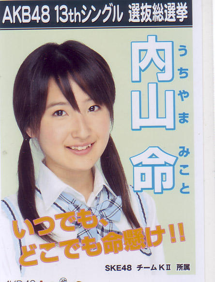 12月6日付でチームKIIから研究生に降格してしまいましたが、きっと内山命ちゃんのパワーがあれば復活してくれると信じています。